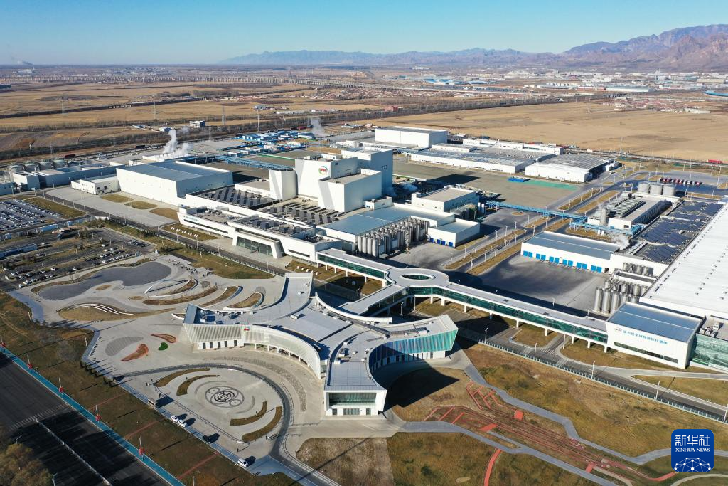 这是11月23日拍摄的呼和浩特市伊利现代智慧健康谷一景,伊利液态奶全球智造标杆基地等工厂坐落于此(无人机照片)。