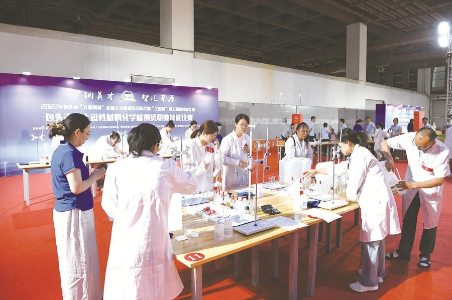 ——提升职工技能素质。深入开展劳动和技能竞赛活动,创新打造包头“工匠杯”职工职业技能比赛品牌,全市参赛企事业单位覆盖面达80%以上,五年来,共298.8万人次参与劳动和技能竞赛,帮助1.35万人次提升技术等级。围绕我市建设“世界稀土之都”“世界绿色硅都”和“两个稀土基地”,首次举办“两都”建设专项岗位练兵活动。在58项比赛中,全市晶硅、稀土产业企业全部参与其中,参与职工达2万人次以上,职工围绕稀土电解工、单晶炉台维修等工种(职业)展开全方位技能大比拼,一支高素质、强活力、数量充足的高技能人才队伍正阔步行进于新征程。