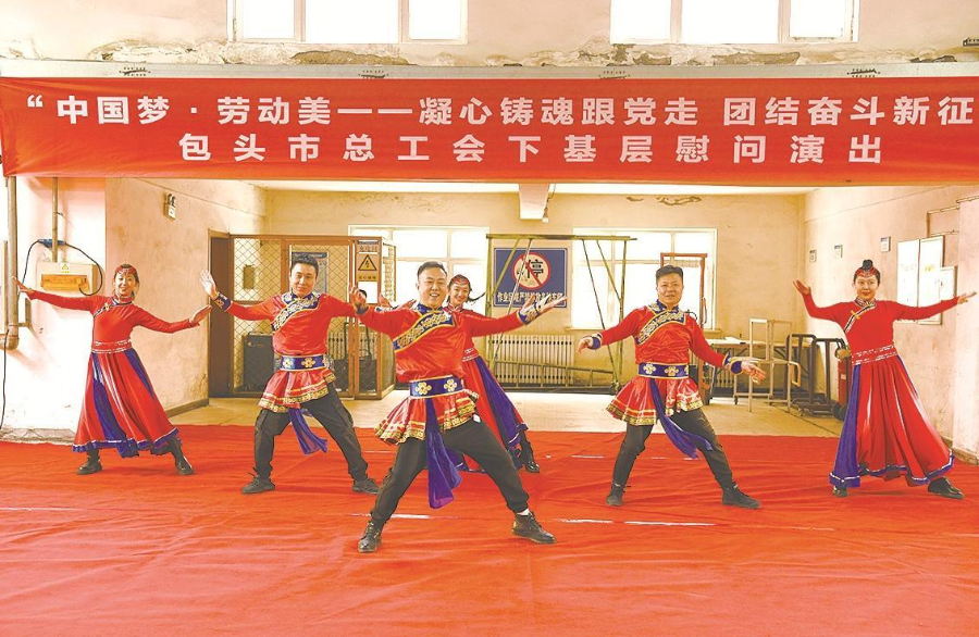 包头市总工会下基层慰问演出。