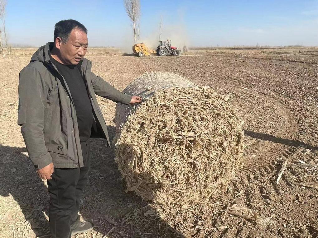 眼下,在巴彦淖尔市临河区干召庙镇新丰村的农田中,农机手驾驶农机快速完成玉米秸秆收集、打捆等作业,一捆捆秸秆码放在空地上。新丰村党支部书记康孝利说:“过去,我们主要通过焚烧处理农田秸秆,既污染环境,又浪费资源。现在,我们把秸秆打捆后卖给养殖场,既环保又增收。”