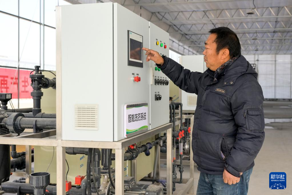 12月7日,工作人员在达拉特旗现代数字农业科技产业园操作智能施肥系统。