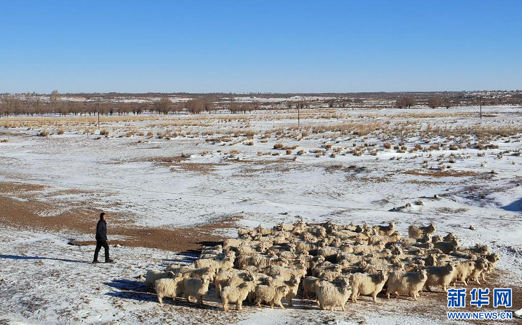 杭锦旗境内牧羊人。新华社记者 贾立君 摄