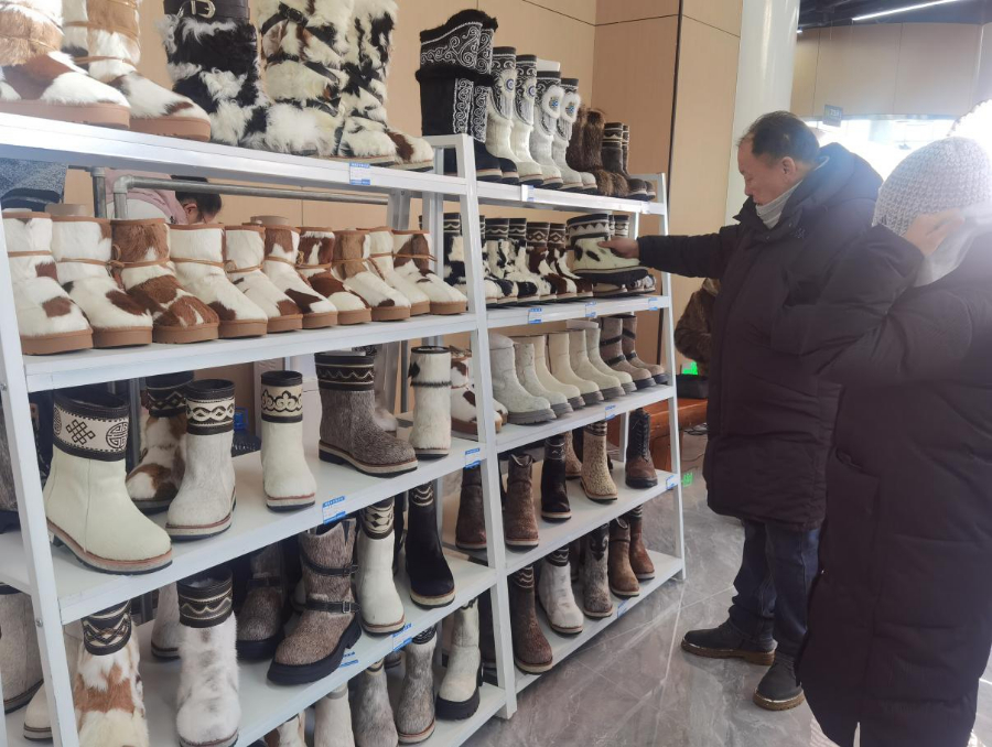 12月17日,游客在冰雪那达慕上的冰雪大集上选购。