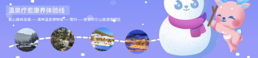 线路行程:→市内氧心雪道(观赏雪域森林的绝美景观)→海神温泉博物馆(沐浴冰雪中的天然温泉)/“阿尔善”疗法体验馆(体验温泉疗法)→雪村(碰撞多元异域美食风味)→夜宿阿尔山旅游度假区。(张丹丹)