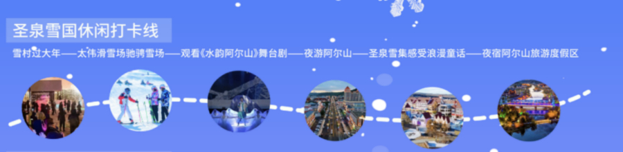 线路行程:→雪村(感受“过大年“氛围)→冰雪广场(体验冰雪大闯关、冰雪趣味运动会)→太伟滑雪场(驰骋雪场、滑雪进阶)→观看《水韵阿尔山》舞台剧演出→夜游阿尔山→圣泉雪集(一站式冰雪娱乐体验,感受冰雪童话世界)→海神温泉博物馆一中国温泉博物馆→夜宿阿尔山旅游度假区