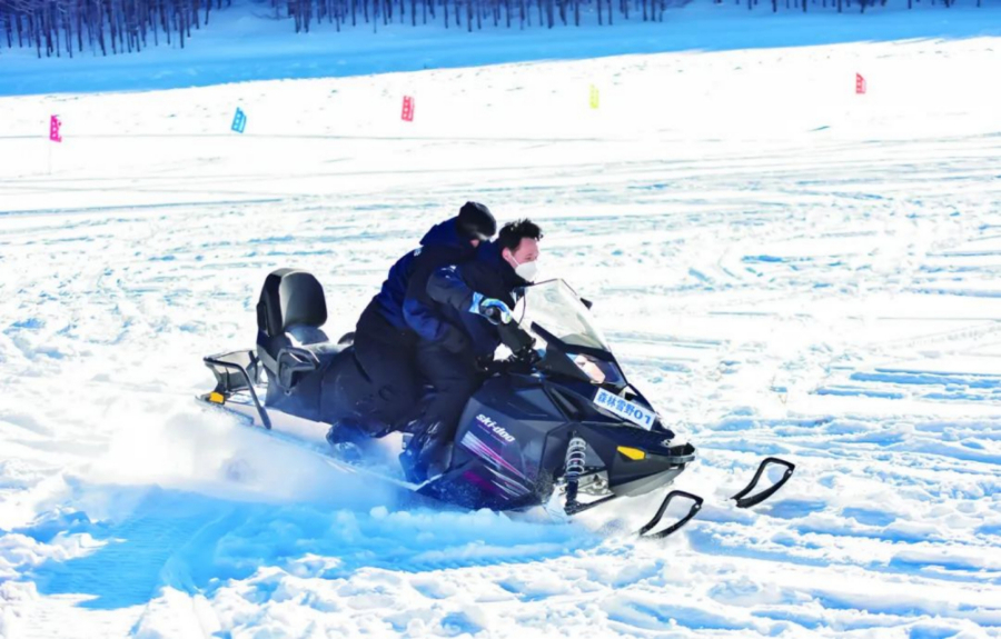 在一望无际的雪原上,五颜六色的雪地摩托车飞驰掠过,车尾掀起一股长长的雪浪。赶紧坐上雪地摩托在雪原上兜一圈,体验冰雪运动的乐趣。