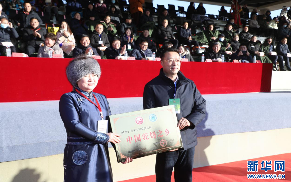 开幕式现场,阿右旗展示获评“中国驼奶之乡”称号。新华网发