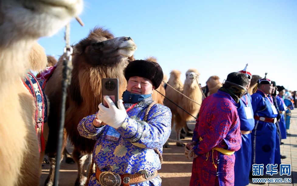 骆驼主人向家人分享达慕大会现场。新华网 杨腾格尔摄