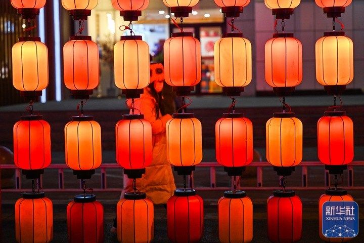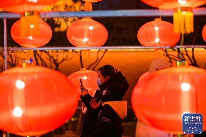 12月29日,市民在呼和浩特市大召广场拍摄灯笼。新华社记者刘磊摄