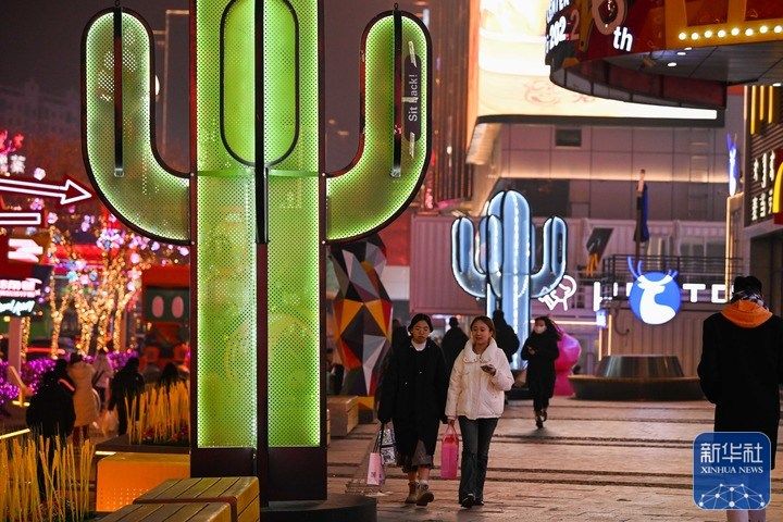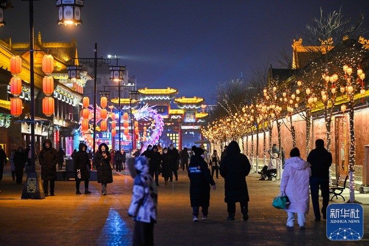 元旦佳节到来,“塞外青城”内蒙古呼和浩特市在主要道路、广场、商业区等地装饰各类灯光,吸引了众多市民观赏和游玩。各类灯光不仅营造了节日氛围,也使城市夜景焕然一新,为当地“夜经济”增加更多活力。新华社记者:彭源