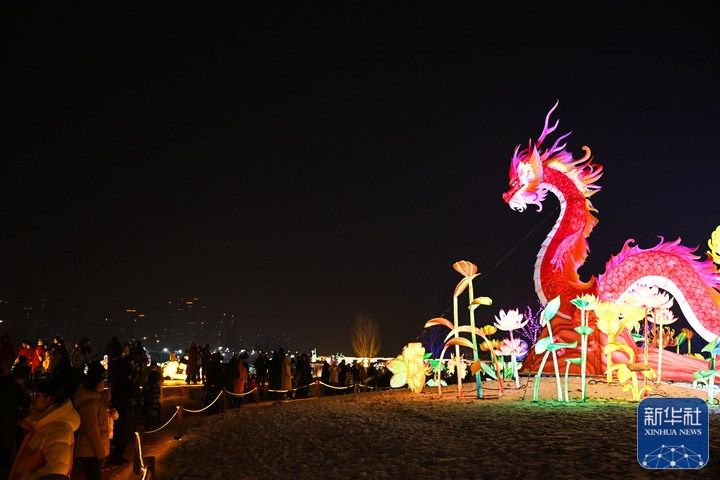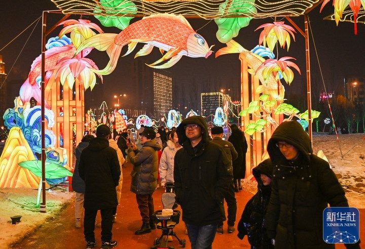 12月29日,市民在呼和浩特市大召广场观赏灯笼。新华社记者刘磊摄