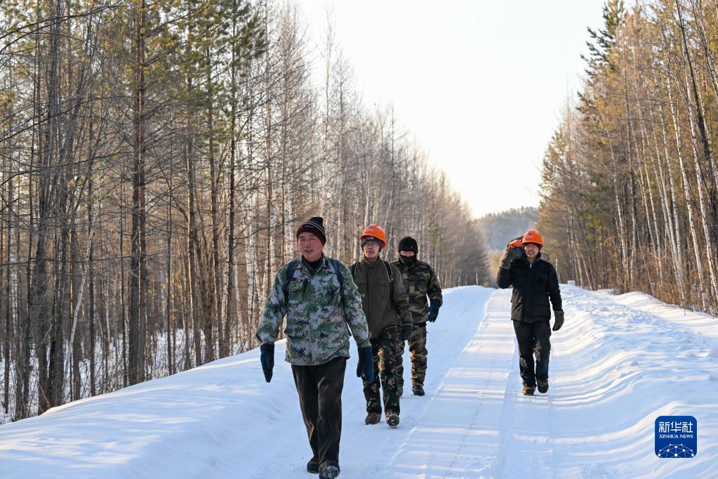 2月23日,内蒙古森工集团满归公司乌龙岱林场402工队职工上山作业。新华社记者刘磊摄