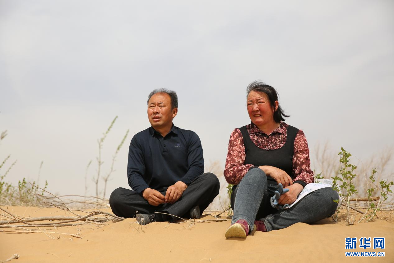 4月21日,李建国(左)和妻子商量治沙方案。新华网杨腾格尔摄
