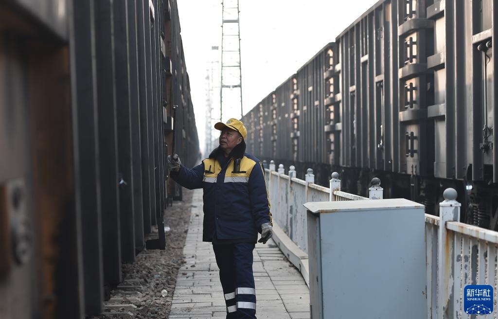 1月12日,吉海清在为万吨大列进行检查。新华社记者刘磊摄