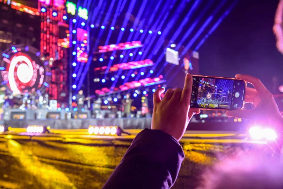 活动现场缤纷的灯光秀,于每个整点时刻在14栋楼体上交织成一幅幅美丽的画面。人们纷纷驻足观赏,拍照留念,将这难忘的时刻定格。