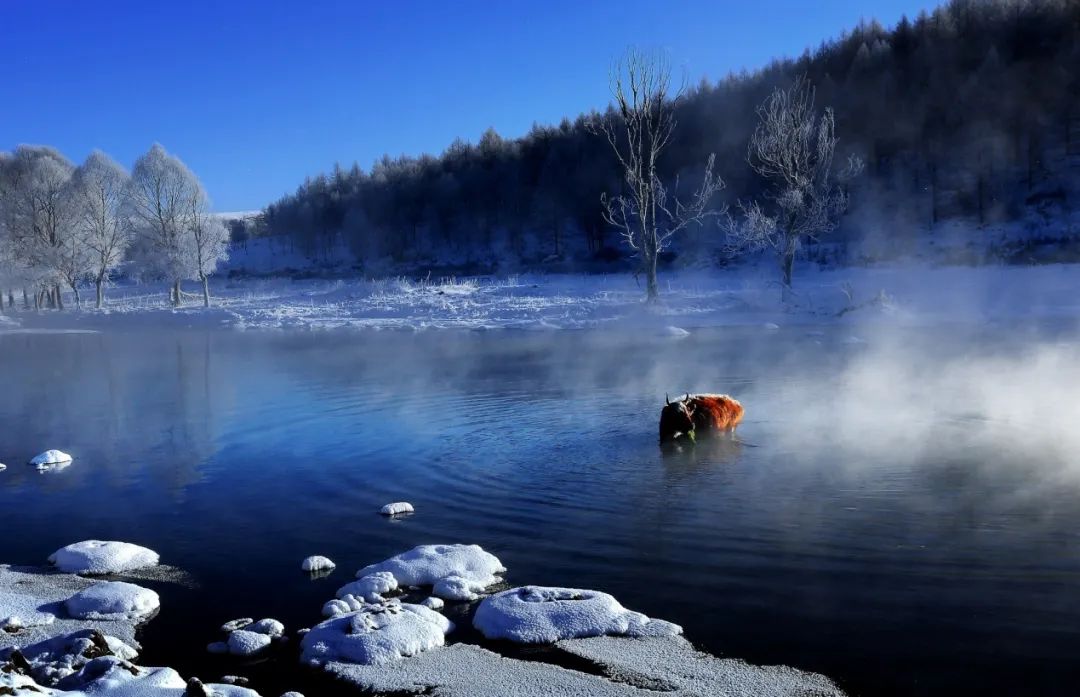 看不冻河水汽腾腾