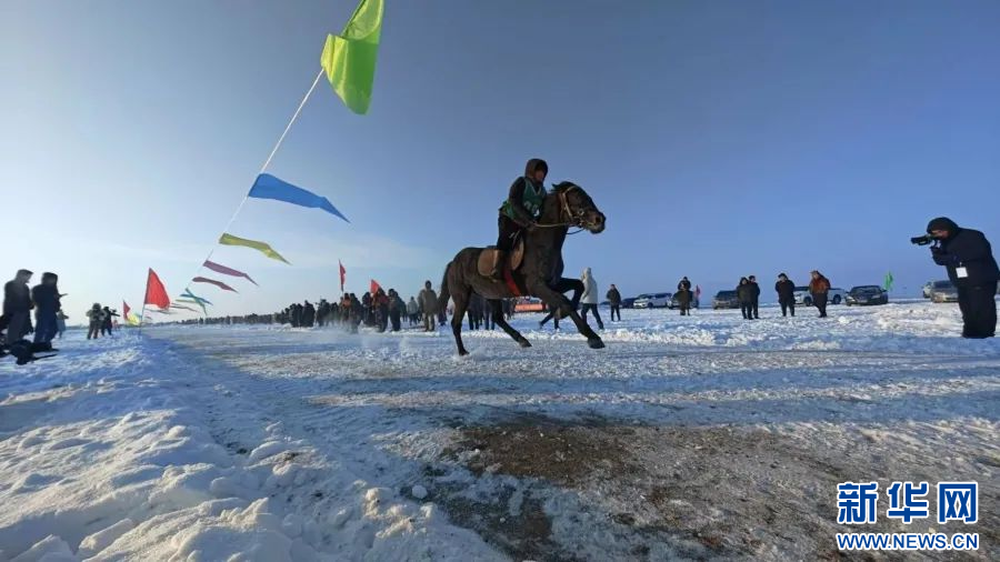在莫力达瓦,观看雪地赛马。新华网发(李霞 摄)