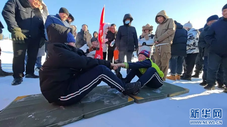 第十届鄂伦春冰雪“伊萨仁”活动现场,拉棍比赛正在进行。新华网发(李霞 摄)