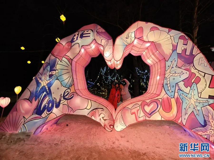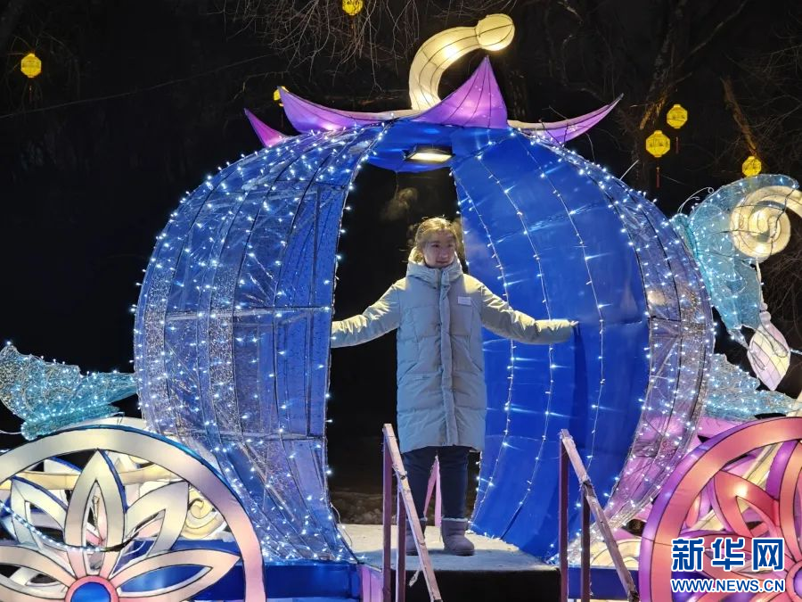在扎兰屯的新年灯会上,和南瓜马车合个影。记者 李霞 摄
