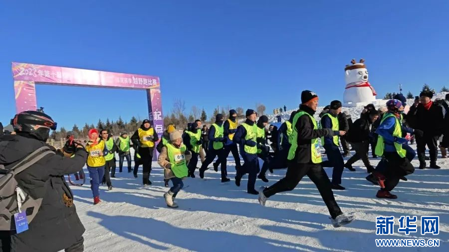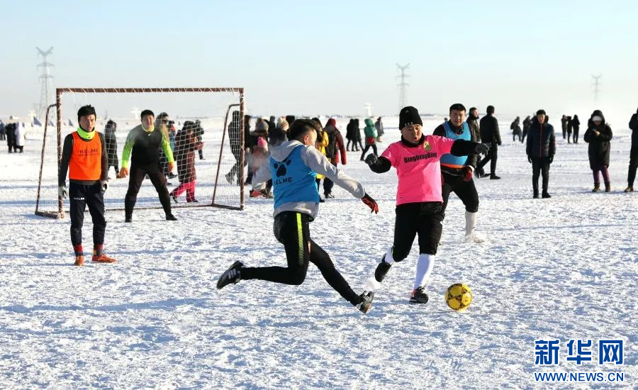 2023年12月27日,第十届鄂伦春冰雪“伊萨仁”活动现场,冰雪半程马拉松、“本布利”足球赛、拉棍、押加、野雪攀岩点燃人们的运动激情。