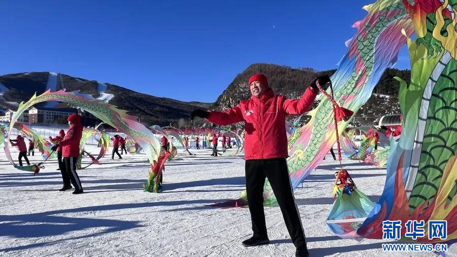 百人舞龙团队在美林谷滑雪场舞出非遗文化情怀,舞出文体融合魅力。新华网发(肖璐 摄)