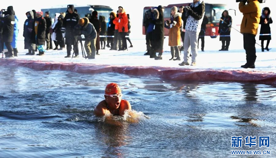 2023年12月17日,“喜迎十四冬燃情冰雪季”2023中俄蒙国际冬泳邀请赛在海拉尔区冬泳基地举行,来自中国、俄罗斯、蒙古国的70多名冬泳爱好者,在冰河上挥臂逐浪,激情畅游。