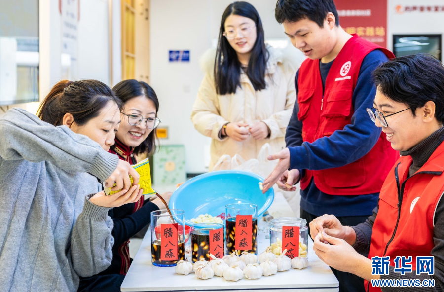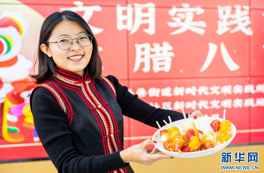腊八节将至,内蒙古自治区呼和浩特市玉泉区清泉街社区举行“我在新时代文明实践站过腊八节”民俗文化活动。社区志愿者与居民代表欢聚一堂,通过品尝腊八粥、腌腊八蒜、制作糖葫芦等方式,感受传统民俗文化的独特魅力。