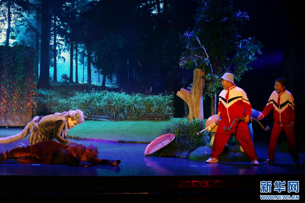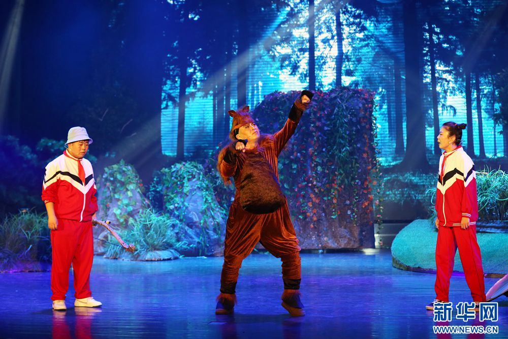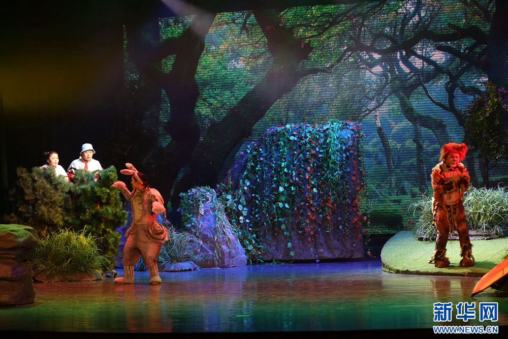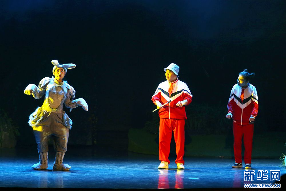 1月19日晚,演员在儿童剧《刘小闯学画》中表演。新华网 石毅 摄