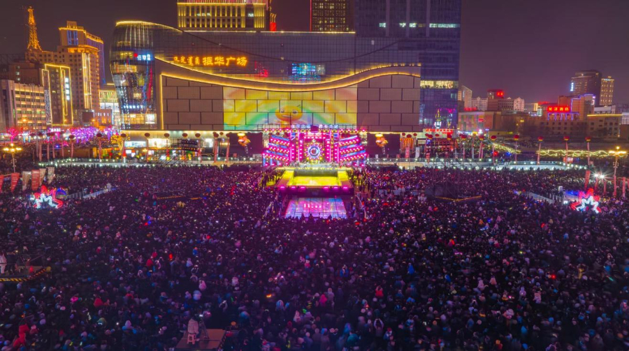 2023年12月31日晚,呼和浩特市新华广场举行的跨年夜活动,吸引165万市民参与。新华网发(乐炎 摄)