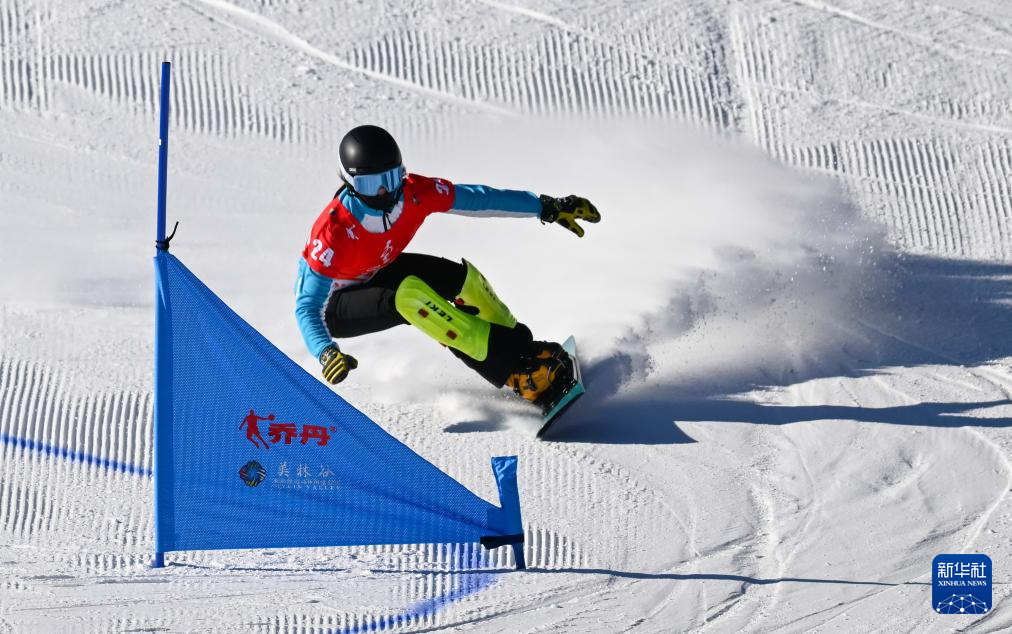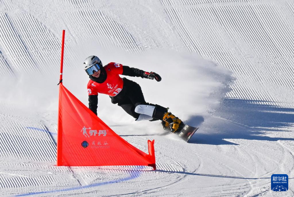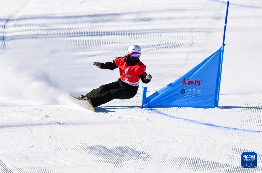 1月22日,内蒙古队选手冯舒雨在单板滑雪青年组女子平行大回转预赛中。新华社记者刘磊摄