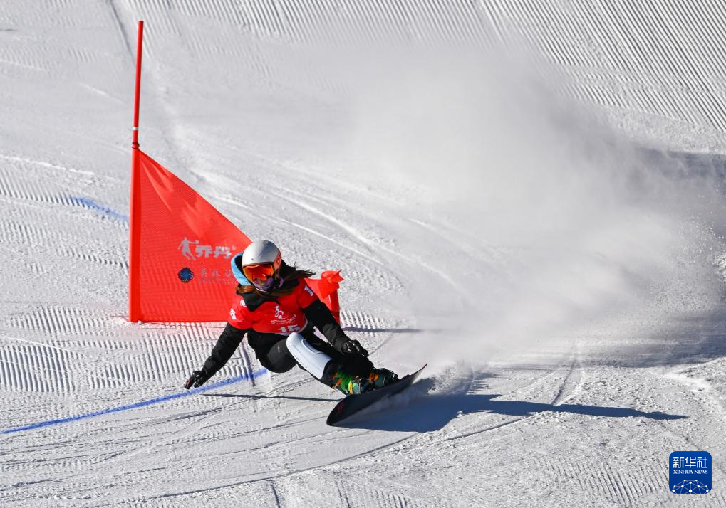 1月22日,内蒙古队选手刘文婕在单板滑雪青年组女子平行大回转预赛中。新华社记者刘磊摄