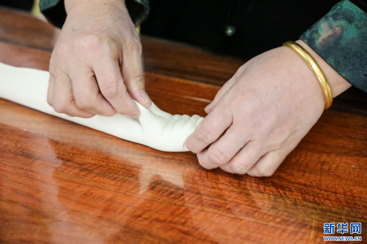 1月22日,手工艺人捏制“龙”样面塑。新华网发(李伯伦 摄)