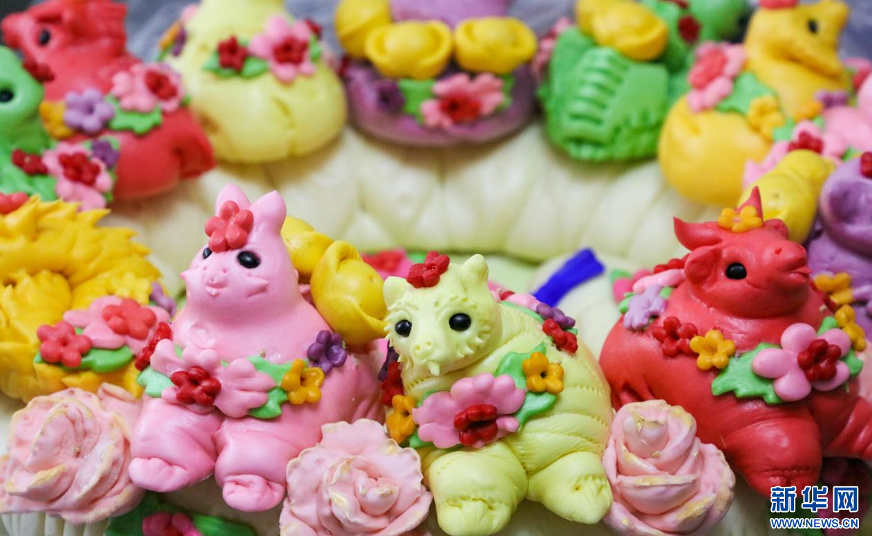 1月22日,手工艺人做出的面塑作品。新华网发(李伯伦 摄)