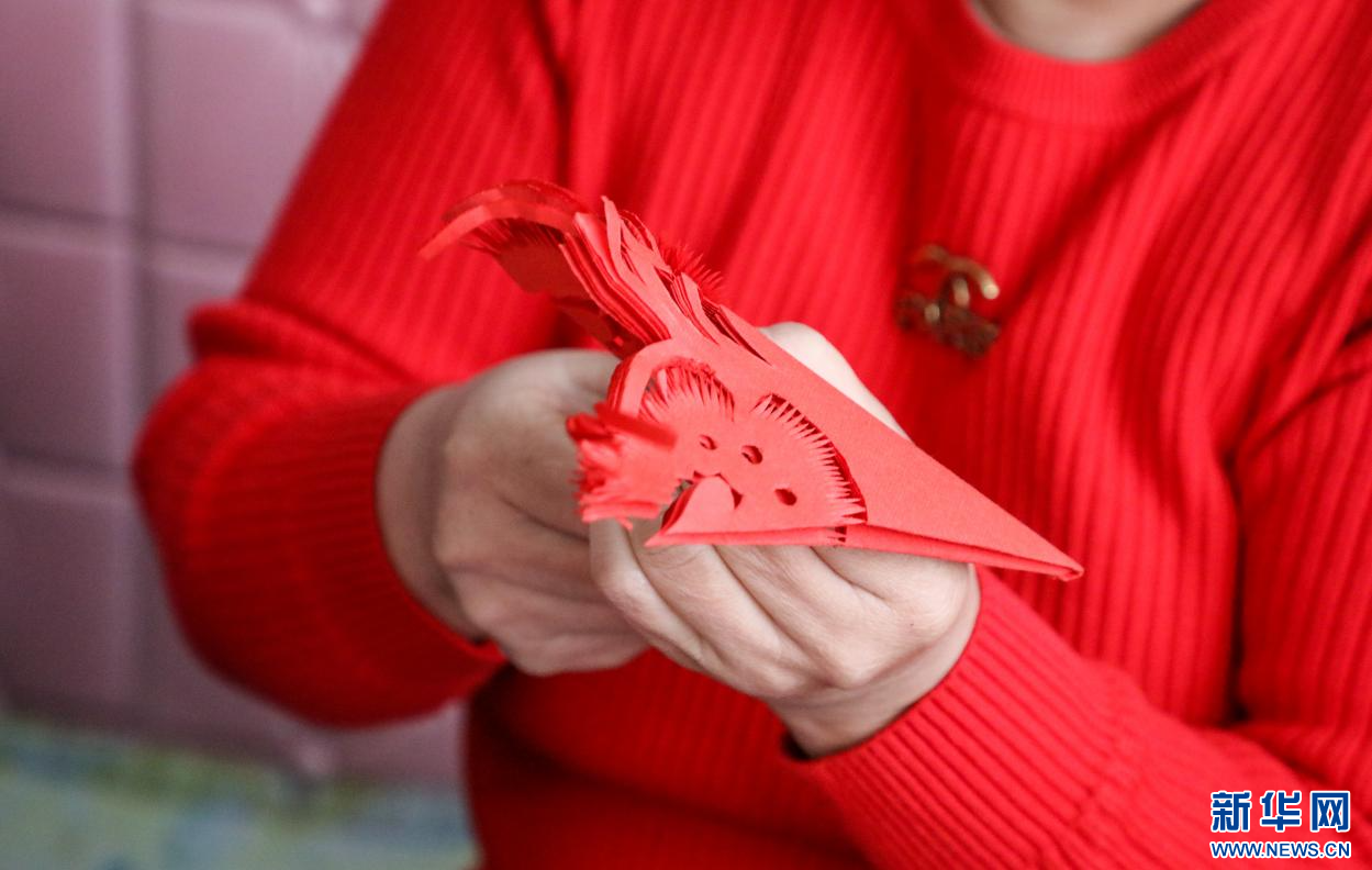 1月22日,剪纸艺人在剪窗花。新华网发(赵天宇 摄)