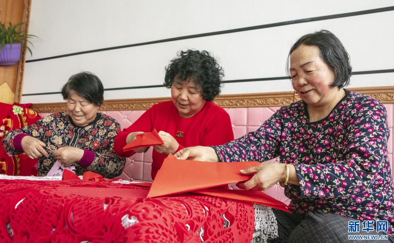 1月22日,剪纸艺人在炕头上剪窗花,准备迎接春节到来。新华网发(李伯伦 摄)