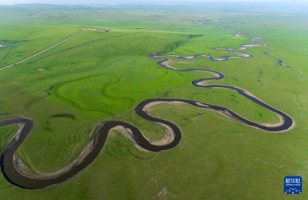 图为2023年7月18日在呼伦贝尔市陈巴尔虎旗境内拍摄的莫尔格勒河景色(无人机照片)。新华社发(王正摄)
