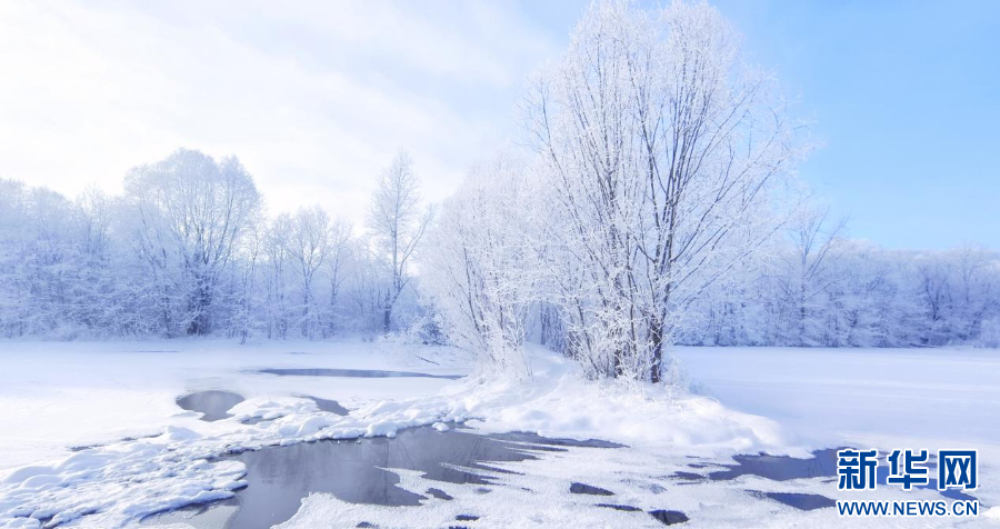 2023年12月20日,-42℃的内蒙古根河市“冷极不冻河”岸边出现雾凇景观。新华网发(张红梅 摄)