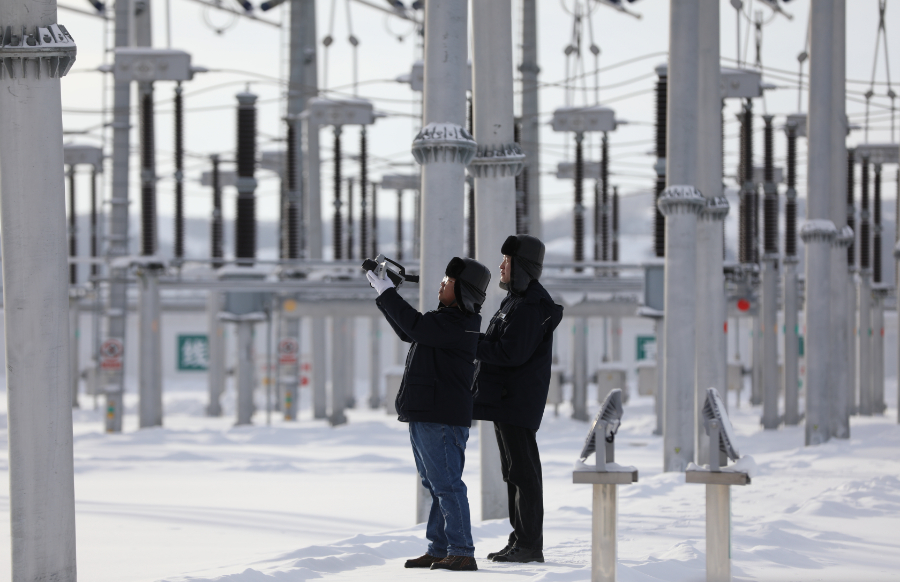 凛冽寒风中,工作人员一边对笔尖哈气,一边记录着主变油温油位和断路器压力值,并对室外机构箱和端子箱内加热趋潮装置的运行状况进行检查。另一边,配电专业人员正在雪村景区内对用户侧设备开展专项隐患排查,“地毯式”检查线路设备是否存在不良运行状态,保障广大电力用户和游客过上亮堂、温暖的新春佳节。(孙美琪 蒋后乐 王健)