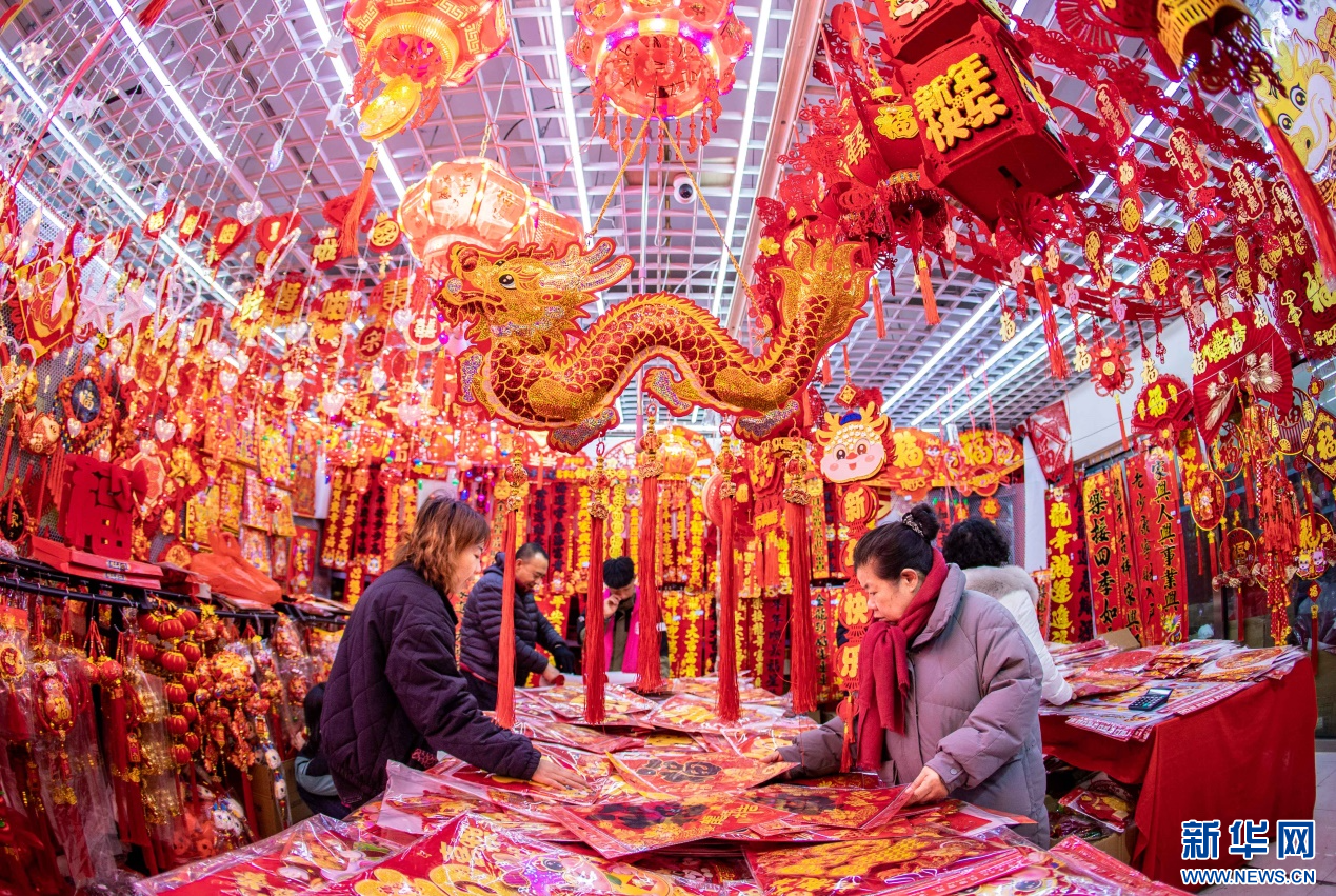2月5日,市民在内蒙古呼和浩特市玉泉区美通批发市场年货节上选购新春饰品。新华网发(丁根厚 摄)