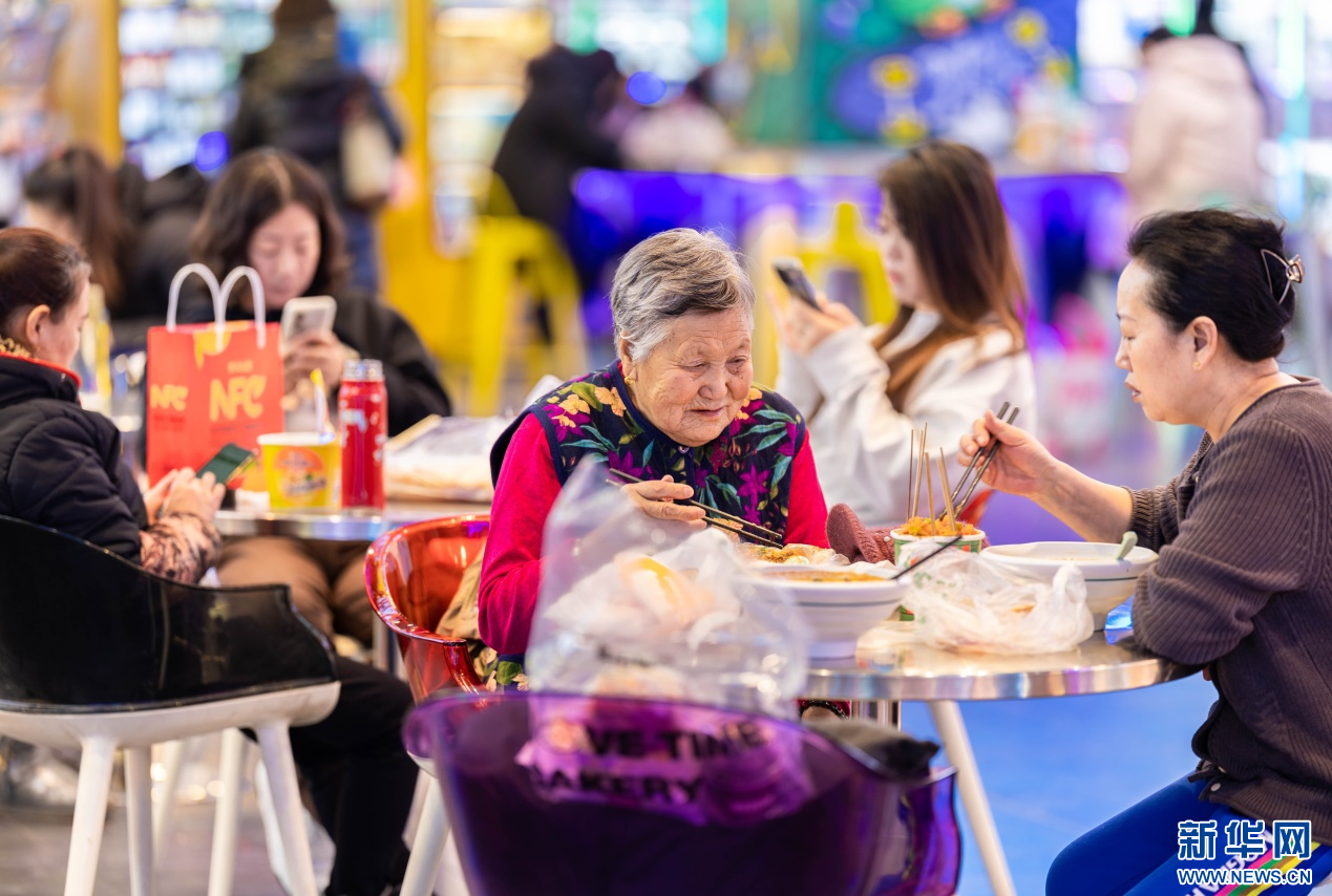 2月1日,市民在内蒙古呼和浩特市玉泉区凯德茂购物中心休闲区用餐。新华网发(丁根厚 摄)