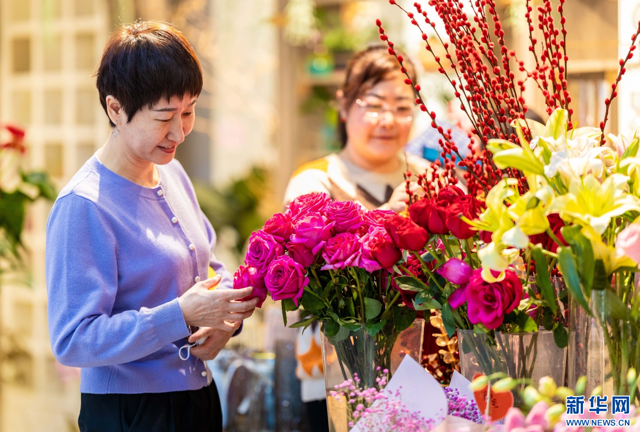 2月1日,市民在内蒙古呼和浩特市玉泉区凯德茂购物中心选购鲜花。新华网发(丁根厚 摄)