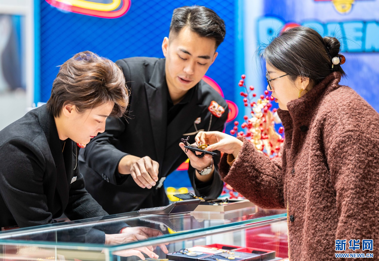 2月1日,市民在内蒙古呼和浩特市玉泉区凯德茂购物中心选购黄金首饰。新华网发(丁根厚 摄)
