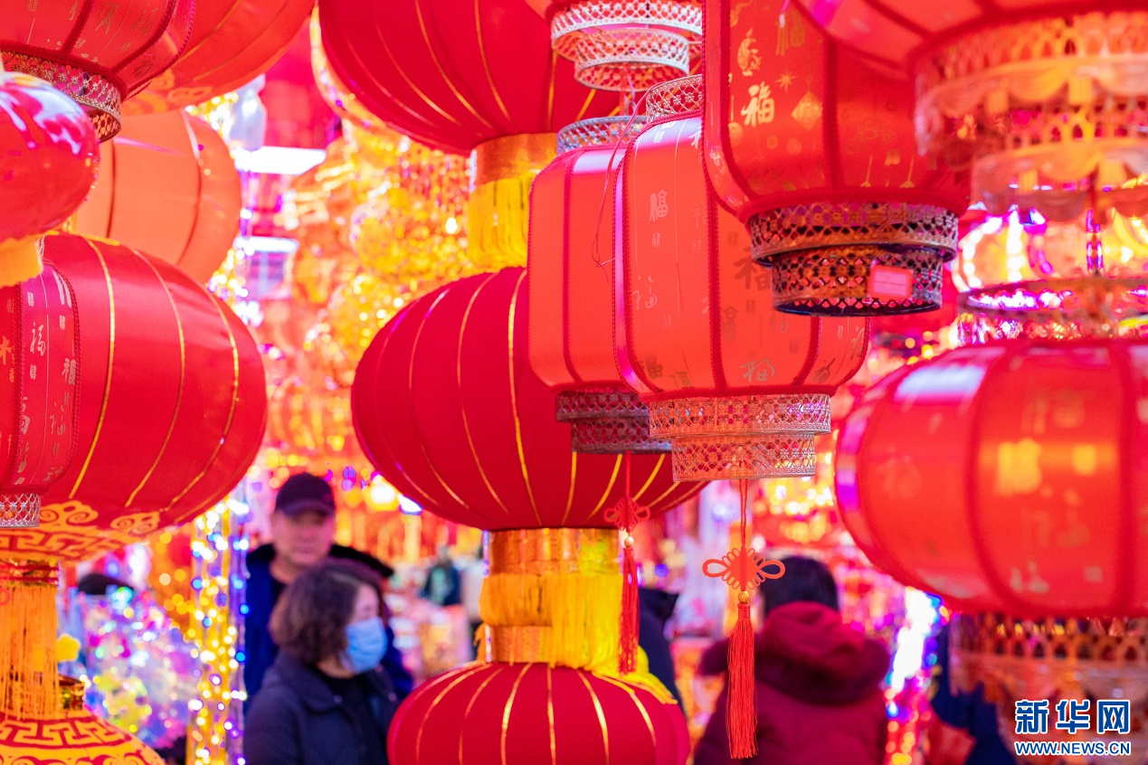 2月1日,市民在内蒙古呼和浩特市玉泉区一家店铺选购红灯笼。新华网发(丁根厚 摄)