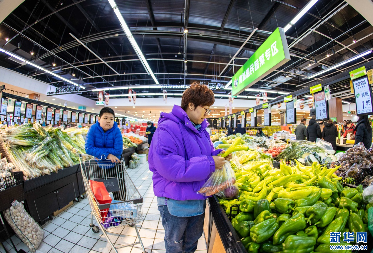2月5日,顾客在内蒙古呼和浩特市玉泉区美通批发市场食全食美超市“惠民蔬菜专区”选购蔬菜。新华网发(丁根厚 摄)