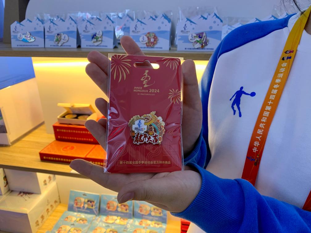 “‘龙年大吉’徽章尤其畅销。”在冰球冰壶馆的“十四冬”官方特许商品零售专区,销售员陈佳佳介绍,徽章将“十四冬”会徽和龙的图案相结合,搭配红色的“龙年大吉”字样,体现出浓浓的年味。“两个元素集中在一枚小小的徽章上,可以让大家在赛后依旧能回忆起这场在龙年春节举办的冰雪运动盛宴。” (记者:张武岳、贺书琛、朱文哲、恩浩、王靖、刘艺淳、戴锦镕、王君宝、李春宇、魏婧宇)