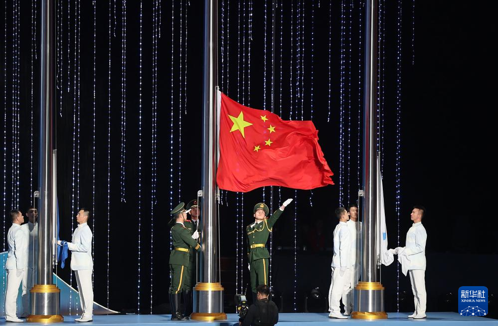 2月17日,中华人民共和国国旗在开幕式上升起。新华社记者 姜帆 摄