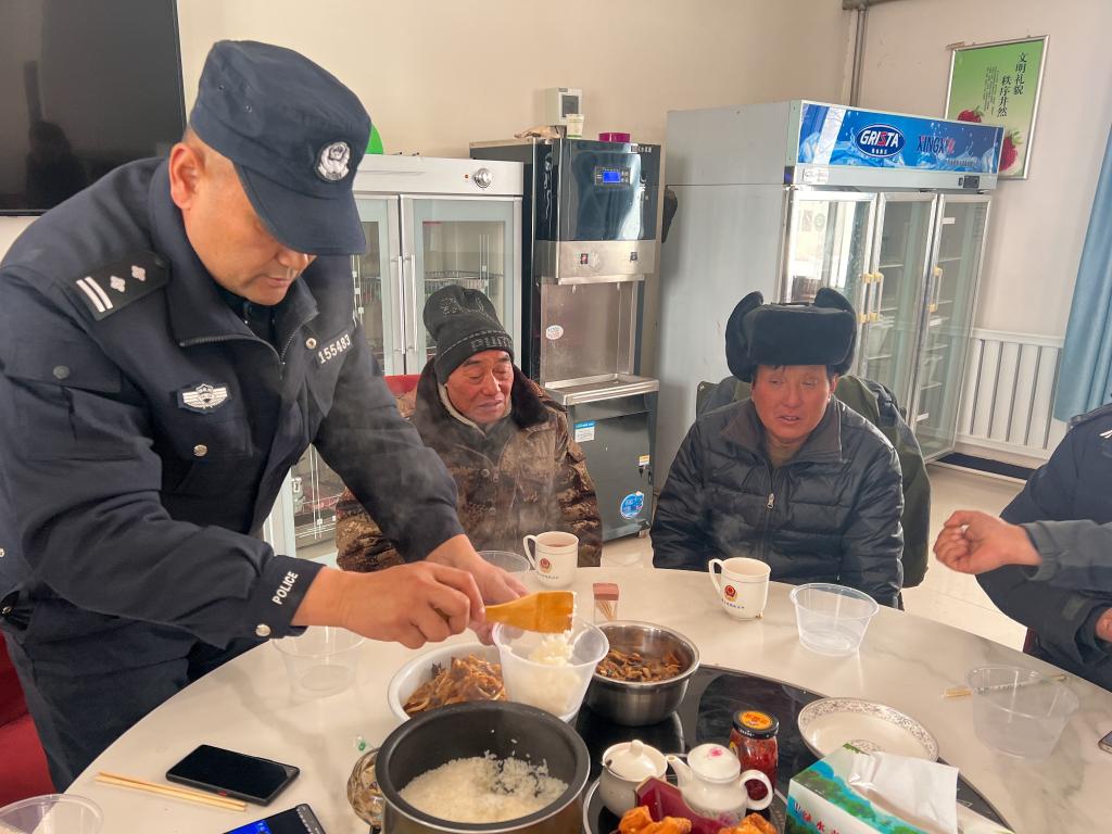 2月20日,戈壁出现了大范围降雪天气,茫茫戈壁被白雪覆盖,这对于搜救人员无疑是一个好消息,白雪覆盖的戈壁上更方便发现走失群众留下的足迹。中午12时许,民警和救援队伍在嘉黑公路130公里处发现一串新脚印,顺着脚印找去,最终距离路边60公里的荒滩处发现两名男子披盖着棉被蜷缩在地上。搜救人员立即对两名男子的身份进行核实,经确认,两名男子为走失人员,由于天气寒冷,两名男子的脸色发青,已经出现了口齿不清的情况。民警阿腾布拉格当即决定先将老人带回派出所。回到所后,民警为老人递上温水,准备了热腾腾的饭菜。待其脸色逐渐缓和,民警尝试询问男子用工单位和家属。在一番简单的沟通与交流后,民警将两名男子移送其家属。