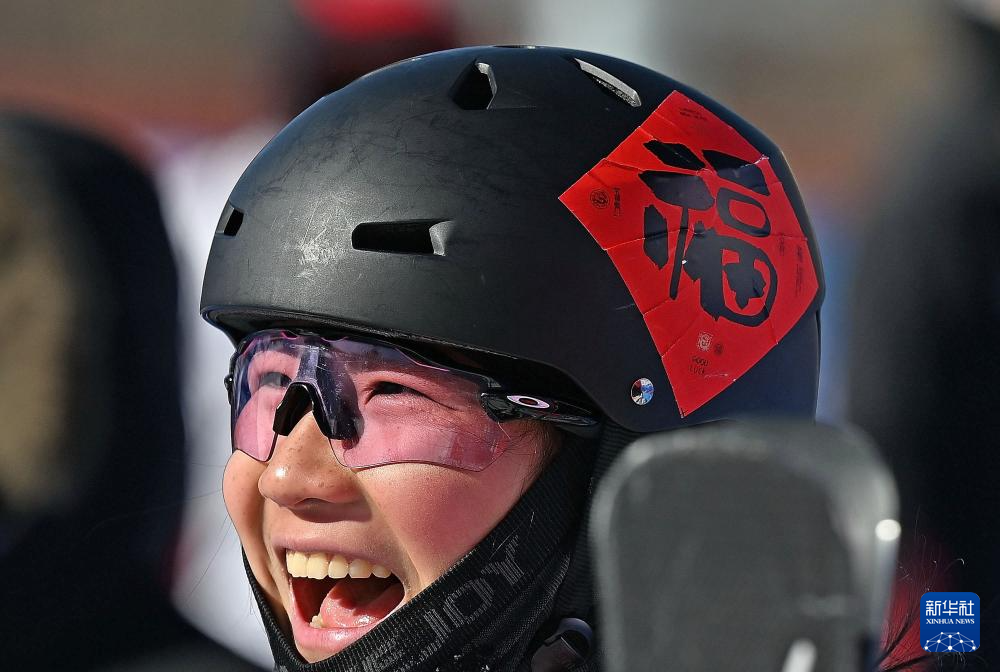 2月22日,河北队选手陈雪铮的头盔上贴着“福”字。