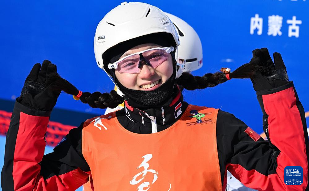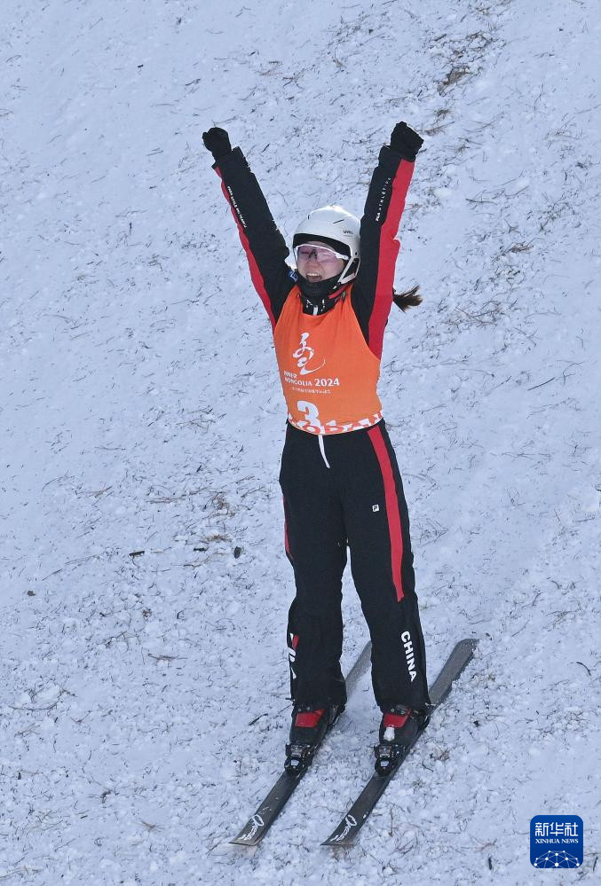 2月23日,内蒙古队选手邵琪在比赛结束后庆祝。