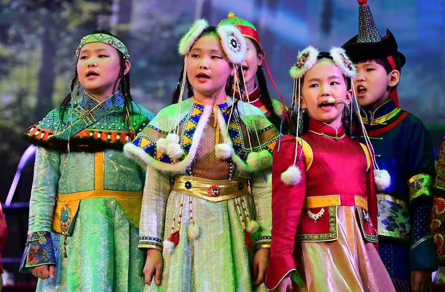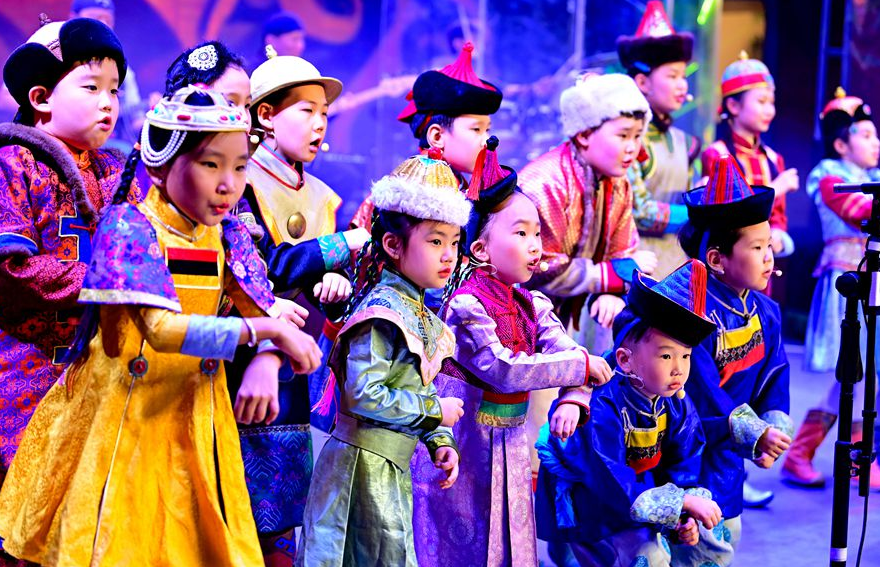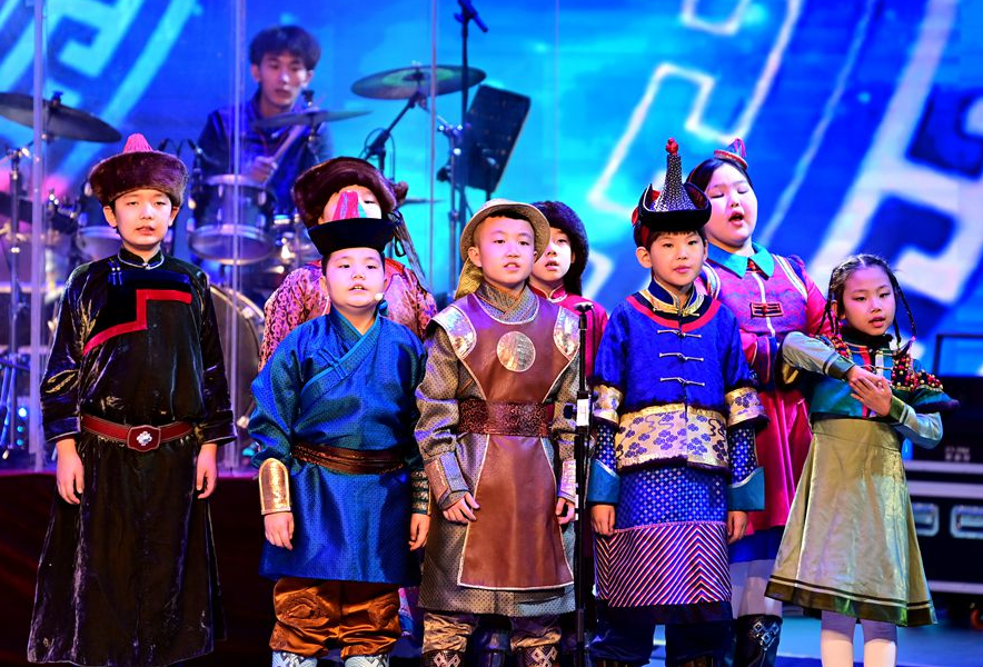 呼伦贝尔五彩儿童合唱团30名小演员用如蓝天般纯净的歌声,将地方民族文化等分享给参加第十四届全国冬季运动会(简称“十四冬”)的部分代表团成员和市民。